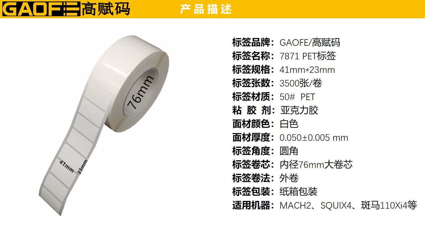 7871 超粘不干膠PET標(biāo)簽 強(qiáng)粘PET貼紙 41mm*23mm PET標(biāo)簽-高賦碼